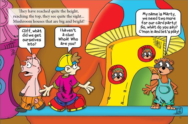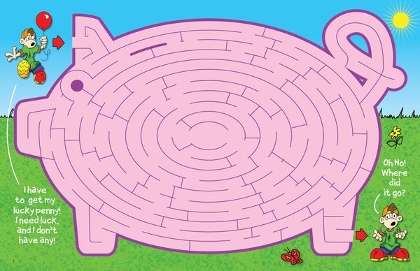 This adventure book features a 2 page maze where the child has to navigate Cliff and Floyd through the inside of a water well to find Margaret!
