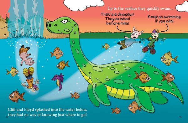 This adventure book features a 2 page maze where the child has to navigate Cliff and Floyd through the inside of a mountain to freedom!